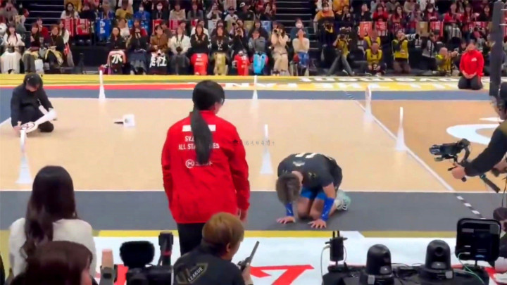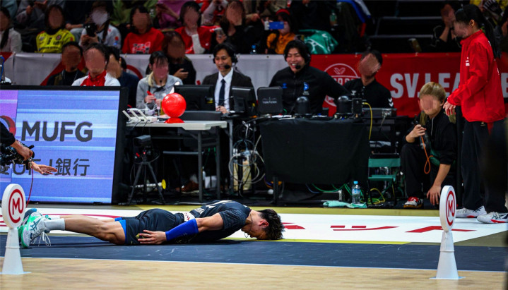 相信屏幕前的不少人在刷视频的时候都有看到原片或者切片,这里博士顺便解释一下,当事人是日本男子排球明星西田有志,在日本排球SV联赛全明星赛中,他尝试发球时不慎失误,意外击中了场边一位女性工作人员,突如其来的状况让现场一阵骚动。一般来说,球场上经常发生上述事情,当事人给对方正常赔礼道歉就行了。