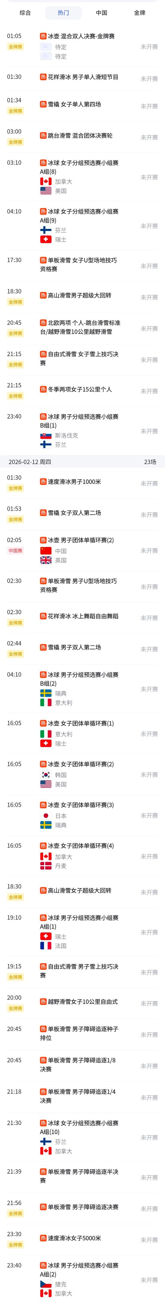 2月11日,米兰冬奥会各项比赛将全面开赛。